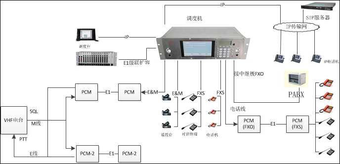 FXO接口允許通過交換機(jī)用戶線訪問M9000B 上的調(diào)度資源。即外線通過FXO 也可以守聽VHF電臺接口。